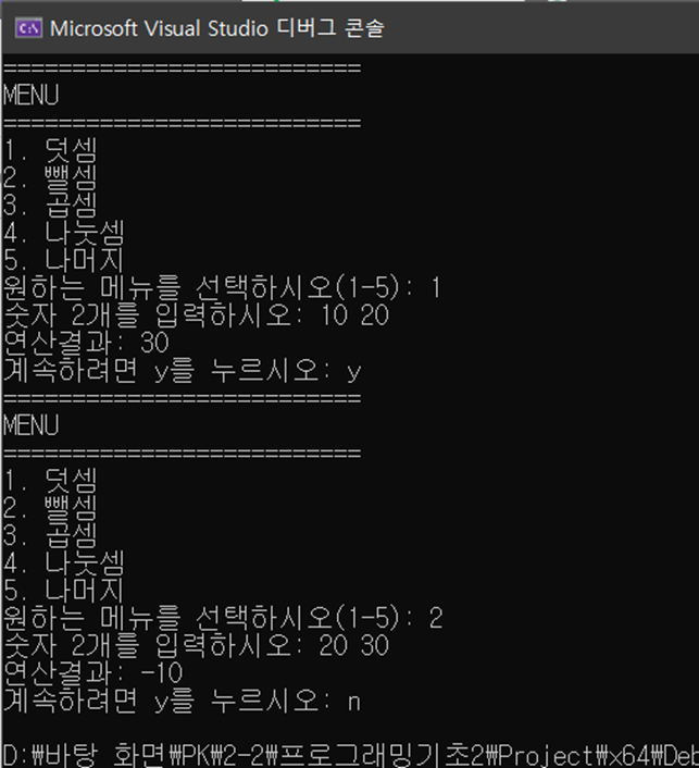 printf("2. 뺄셈\n");