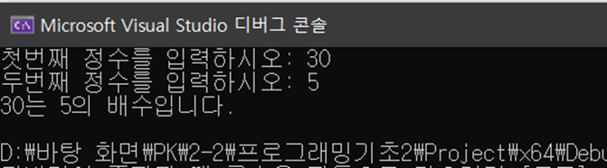 printf("%d는 %d의 배수입니다.\n", n, m);