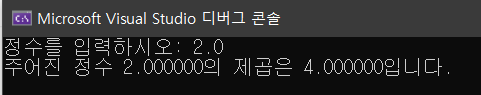 printf("주어진 정수 %lf의 제곱은 %lf입니다.\n", x, square(x));